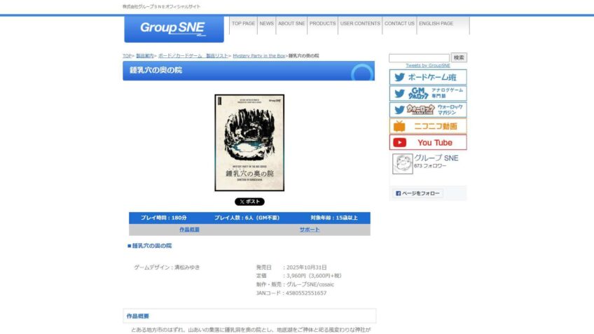 アップデート 「Mystery Party in the Box」シリーズ「鍾乳穴の奥の院」に新たなエラッタが公開
