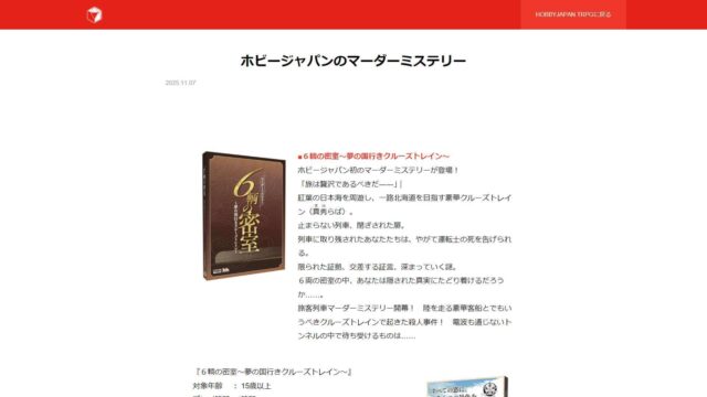 アップデート マーダーミステリー「6輌の密室」にエラッタ追加 PDFでダウンロード可能に