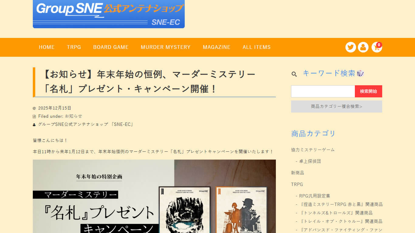 【お知らせ】年末年始の恒例、マーダーミステリー「名札」プレゼント・キャンペーン開催!